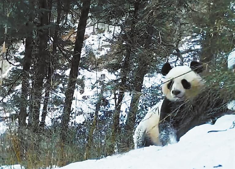 大熊猫国家公园甘肃片区白马河区域出现的大熊猫。